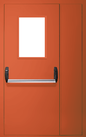 Полуторапольная противопожарная дверь «Антипаника» со стеклом EI 60 (RAL 2000)